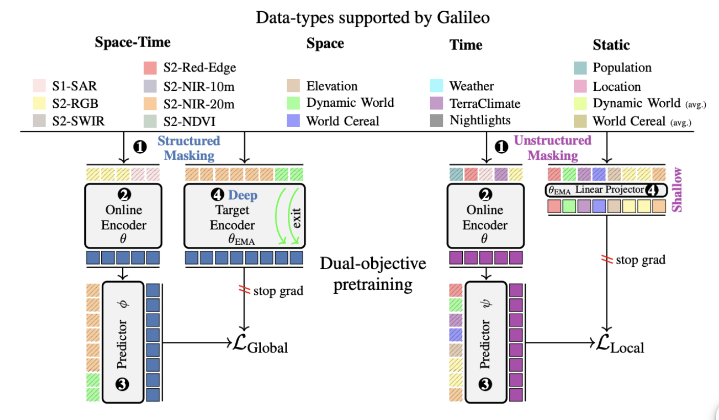 Our AI foundation model for Earth observation, Galileo, is a groundbreaking shift in open satellite and human activity data processing. Galileo uses self-supervised learning to “teach” itself by finding patterns in vast archives of unlabeled data from decades of Earth monitoring - this requires less costly, hand-labeled ground-truth data.
