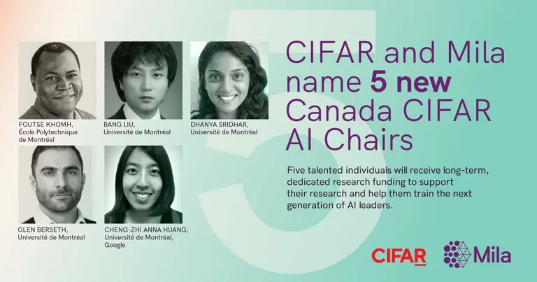 Five Mila researchers have been recognized for their leadership by being named Canada CIFAR AI Chairs. The new Chairs contribute diverse expertise to the Canadian ecosystem, from causality to natural language processing, and software engineering to AI-generated music.