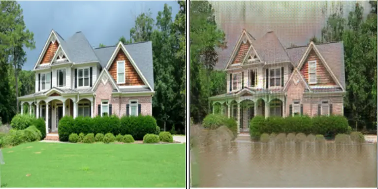 The current version of the tool is a prototype to illustrate the feasibility of applying generative models to create personalized images of an extreme climate event, flooding, that is expected to increase in frequency based on climate change projections (see images). Subsequent versions of our model will integrate more varied types of houses and surroundings, as well as different types of climate-change related extreme event phenomena (i.e. droughts, hurricanes, wildfires, air pollution etc), depending on the expected impacts at a given location, as well as forecast time horizons.