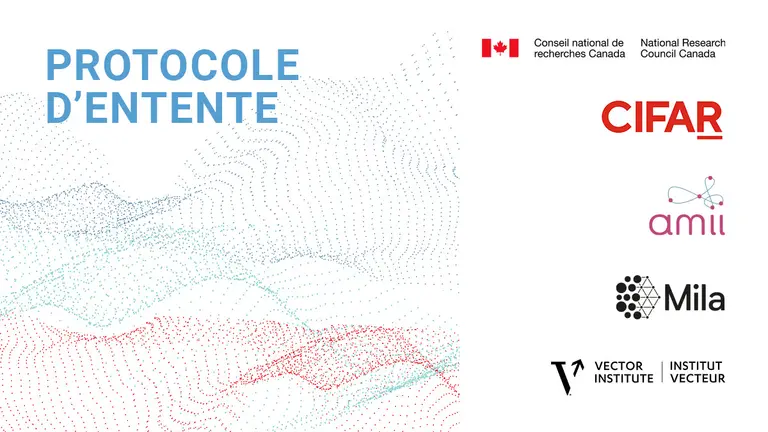 Le CIFAR, le Conseil national de recherches du Canada (CNRC), et les trois instituts nationaux d’IA du Canada (Amii, l’Institut Vecteur et Mila) sont heureux d’annoncer la signature d’un nouveau protocole d’entente. Ce dernier augmentera la capacité de recherche et de formation en intelligence artificielle (IA) et en science des données au Canada en mettant l’accent sur la collaboration entre les secteurs, notamment le milieu universitaire, le gouvernement et l’industrie.